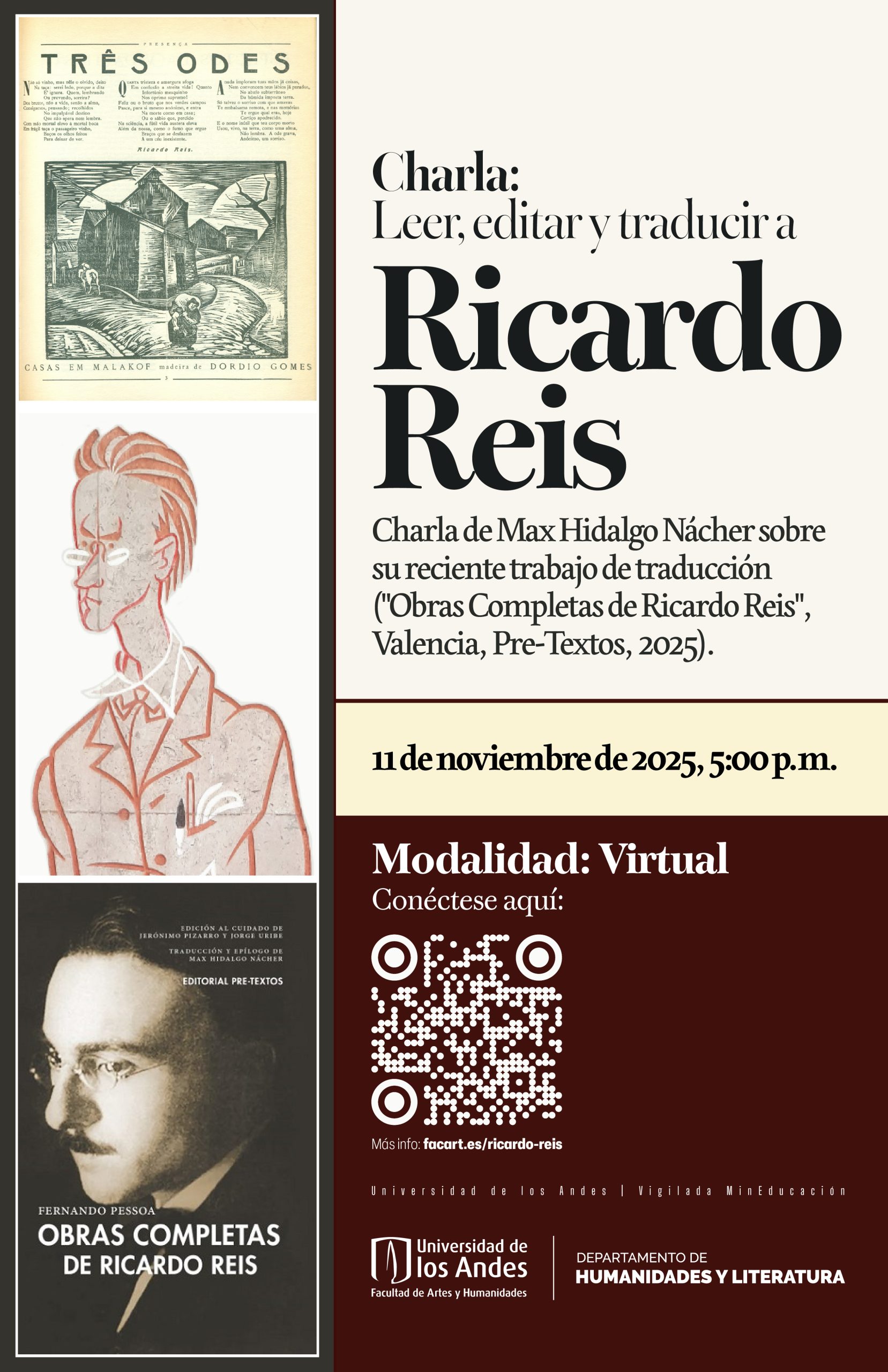El profesor Max Hidalgo Nácher presentará su más reciente trabajo de traducción: Obras completas de Ricardo Reis (Valencia, Pre-Textos, 2025). En esta charla, compartirá su experiencia de lectura, edición y traducción de la obra de uno de los heterónimos más enigmáticos de Fernando Pessoa, explorando los desafíos y descubrimientos de este proceso.